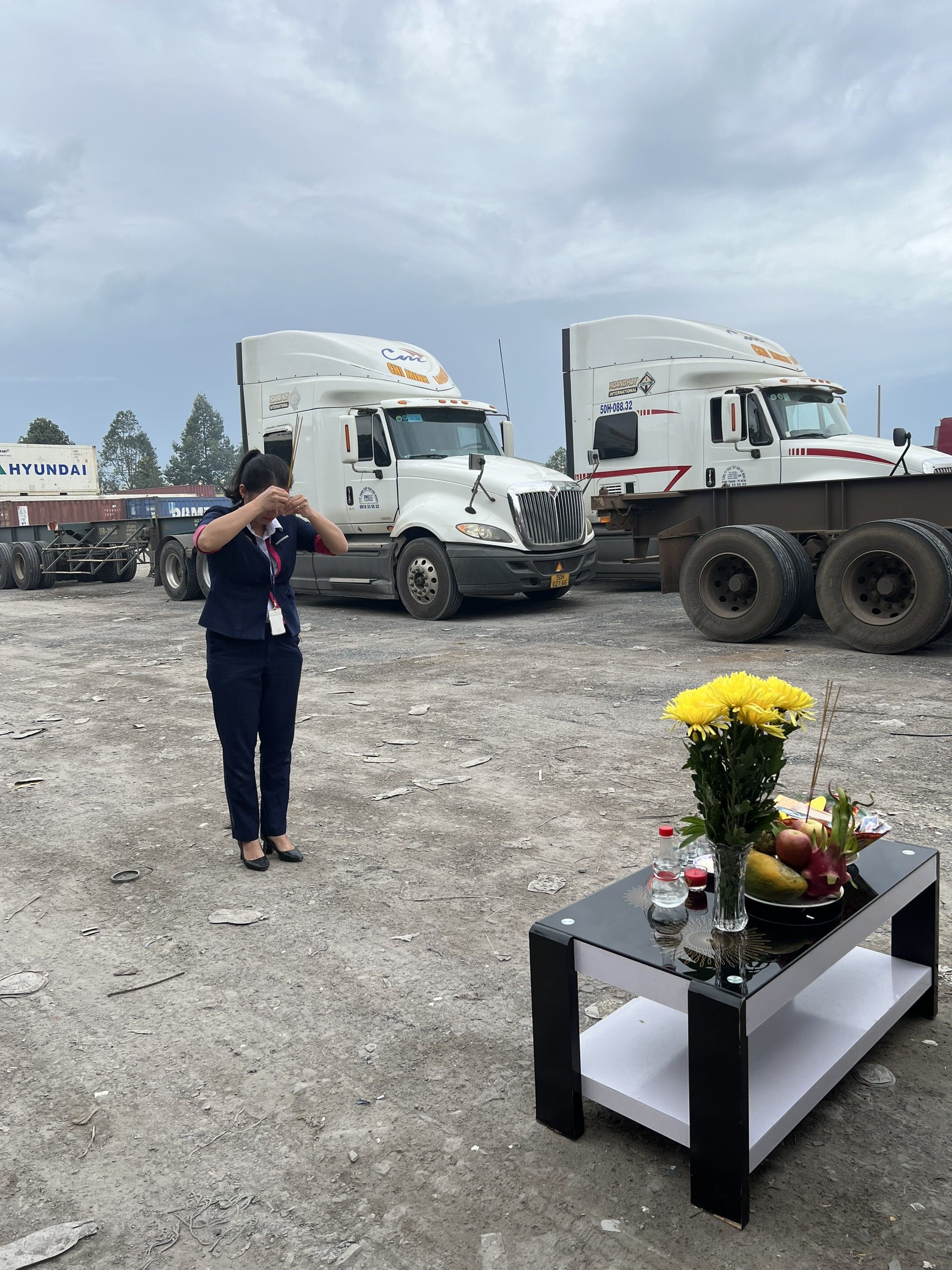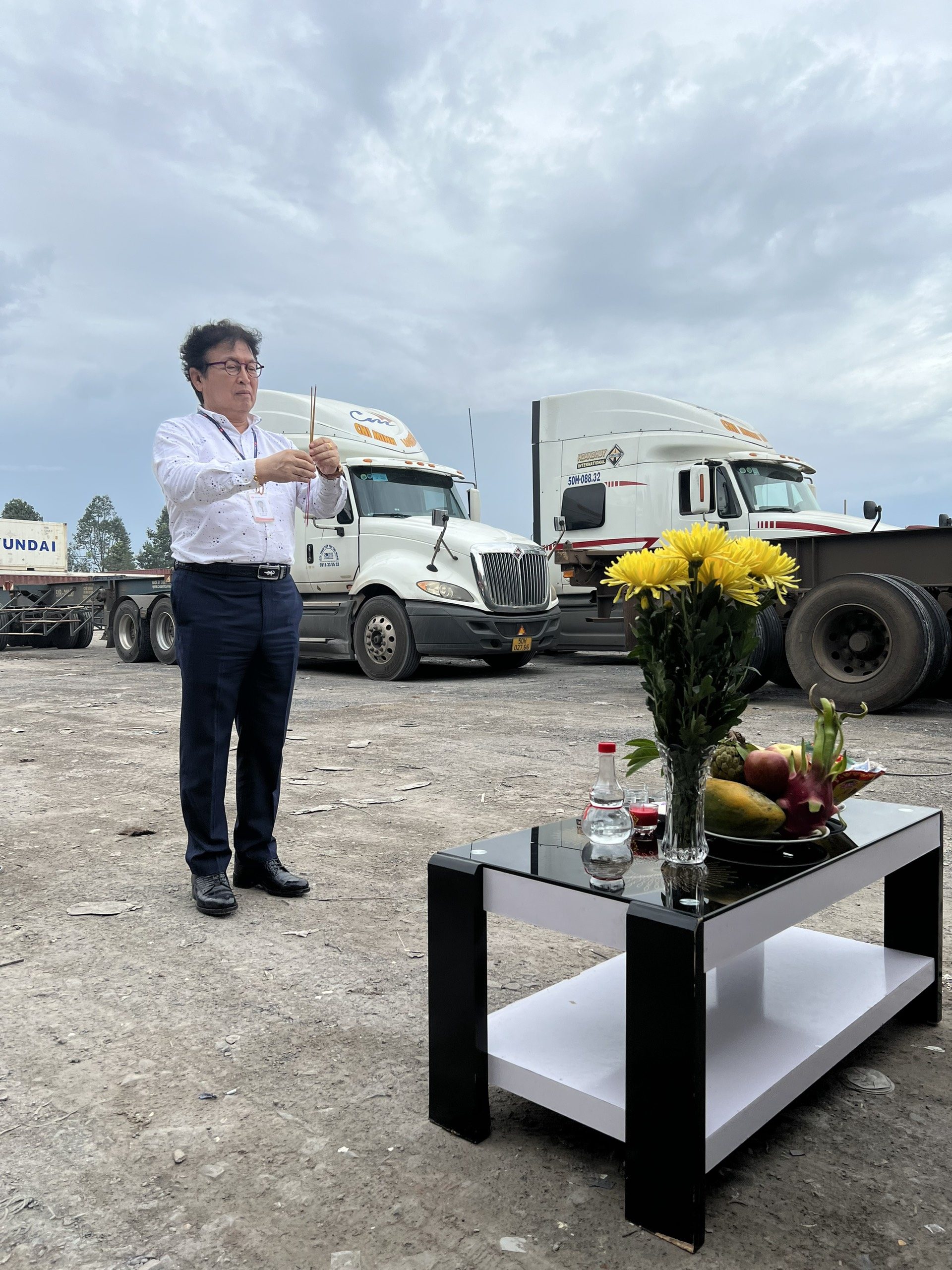 The driver who will drive our new 16th trailer came to Mc Trans trucking yard also and received a message of encouragement from Mr.Sun Lee.